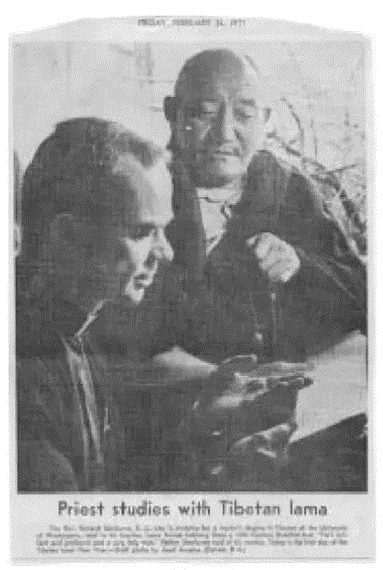 - David Paul Jackson, A Saint in Seattle: The Life of the Tibetan Mystic Dezhung Rinpoche, page 325. Image One below is a photo of Father Sherburne and Dezhung Rinpoche, from David Jackson’s biography, page 326.