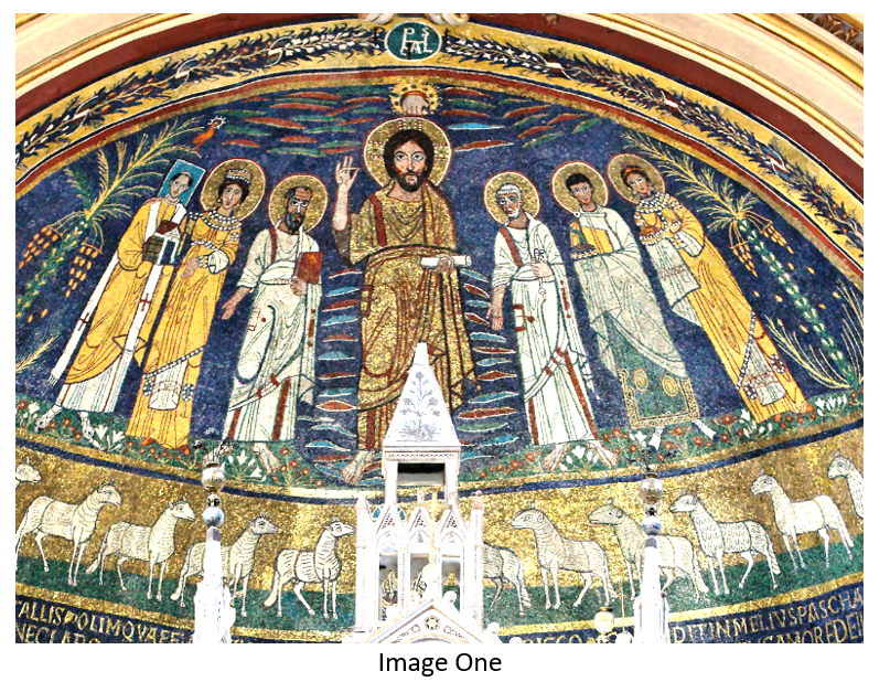 - Thomas Merton, The Seven Story Mountain: An Autobiography of Faith, Boston: Mariner Books, Houghton Mifflin Harcourt, page 120. TM writes: “I was fascinated by these Byzantine mosaics. I began to haunt the churches where they were to be found, and, as an indirect consequence, all the other churches that were more or less of the same period. And thus without knowing anything about it I became a pilgrim. I was unconsciously and unintentionally visiting all the great shrines of Rome, and seeking out their sanctuaries with some of the eagerness and avidity and desire of a true pilgrim, though not quite for the right reason. And yet it was not for a wrong reason either. For these mosaics and frescoes and all the ancient altars and thrones and sanctuaries were designed and built for the instruction of people who were not capable of immediately understanding anything higher …. And now for the first time in my life I began to find out something of Who this Person was that men called Christ. It was obscure, but it was true knowledge of Him, in some sense, truer that I knew and truer that I would admit. But it was in Rome that my conception of Christ was formed. It was there I first saw Him …” (Ibid).